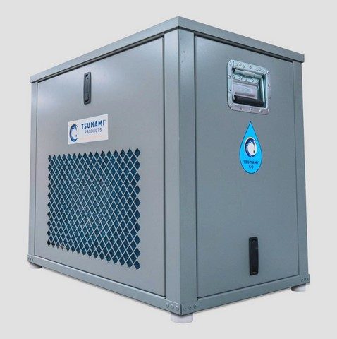 Генератор атмосферной воды компании Tsunami Products: Это устройство действует как кондиционер, осушая воздух для извлечения водяного пара, который затем фильтруется и хранится для питья. Он предлагает масштабируемое решение для производства питьевой воды из окружающего воздуха.