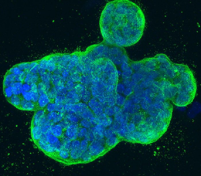 Химероид – мозговой органоид, образованный клетками от разных людей, спустя месяц развития, с характерными эмбрионально-клеточными розетками на поверхности. (Фото: N. Antón-Bolaños et al., Nature, 2024)