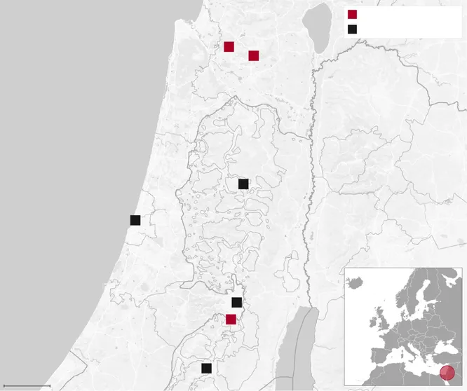 Красный квадрат — возможное место рождения Иисуса; черный — крупный реальный населенный пункт