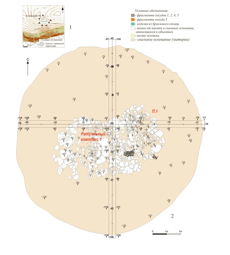 Очень любопытна фибула – она «колхидского» облика, то есть попала к погребённому воину из Закавказья. Эта застёжка могла быть «трофейной» – датировка погребения близка к 715–714 годам до н.э., когда, по письменным источникам, киммерийцы впервые вторгаются в Закавказье – они побеждают урартского царя, и вторгаются на территорию этого государства. Примечательно, что само погребение находится на хребте Азиш-тау, который расположен на пути к перевалам, ведущим в Закавказье.