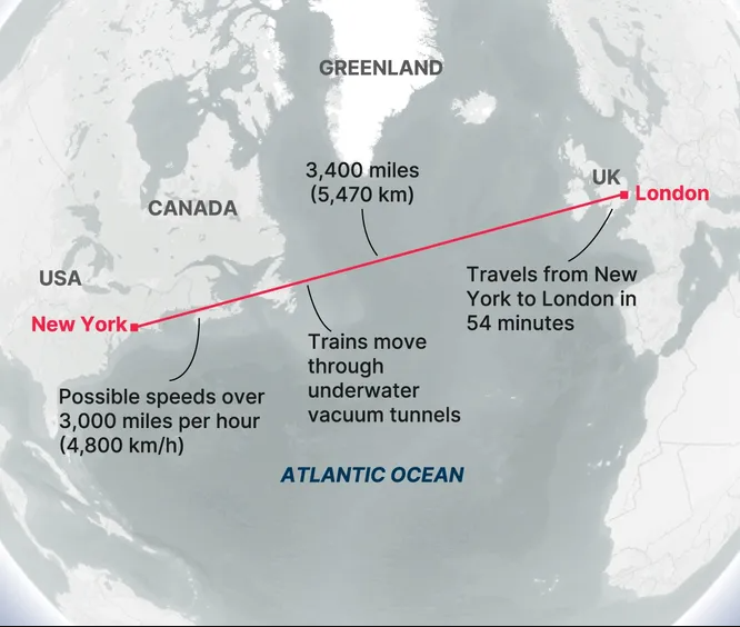 Основная идея заключается в соединении Великобритании и США подводным тоннелем, внутри которого будут курсировать поезда на магнитной подушке.