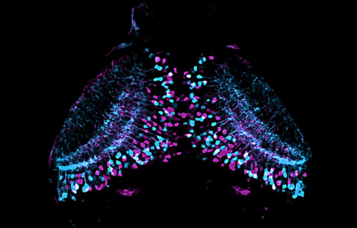 Но действительно ли разница в генетической активности однозначно указывает на разные функции? Сотрудники Института биологического интеллекта Общества Макса Планка описывают в Nature пример того, что так бывает не всегда. Исследователи изучали нейроны зрительного центра в участке среднего мозга рыб, называемом оптическим тектумом (а у млекопитающих верхним двухолмием). В тектум сбегаются сигналы от сетчатки, и с точки зрения эволюции он довольно консервативен среди позвоночных. Примерно у 40 тысяч нейронов оптического тектума анализировали состав и количество разных матричных РНК (мРНК), то есть тех, которые несут информацию о белках. Эти 40 тыс. нейронов удалось распределить по 66 транскриптомным типам, или по 66 разновидностям, отличающимся по содержанию мРНК. Чтобы сделать полный анализ всех мРНК, клетки нужно было вытаскивать с их мест. Но зато так можно было определить, какие гены сильнее всего отличаются активностью в той или иной разновидности нейронов. Дальше уже эти особо выдающиеся мРНК использовали как маркеры, чтобы увидеть разновидности нейронов «по месту жительства», то есть там, где они расположены в исходном нервном центре, в оптическом тектуме. То есть прямо в тектуме исследователи запускали молекулярные аналитические реакции, которые показывали, где какой маркерной РНК больше, а где меньше.