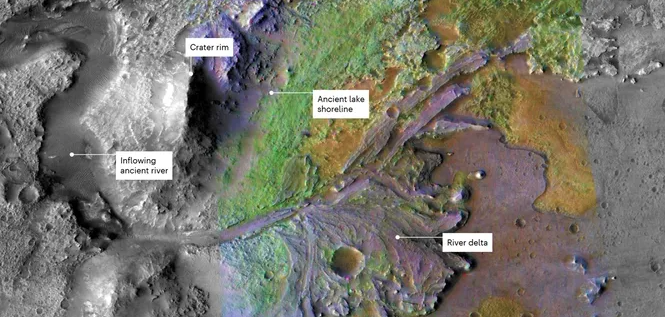 Данные, представленные на конференции, получены из камня в кратере Джезеро, где марсоход приземлился в 2021 году, чтобы искать признаки марсианской жизни. Миллиарды лет назад в кратере было озеро, которое могло быть благоприятным для жизни. Камень образовался в русле древней реки, которая когда-то впадала в озеро.