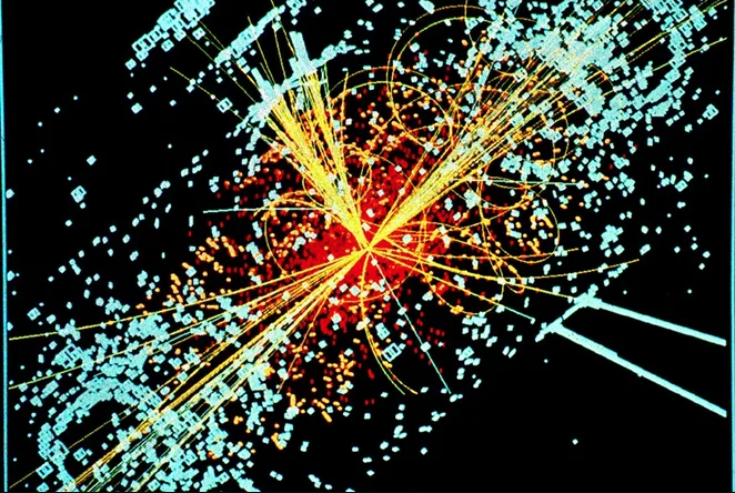 Пример имитации данных, смоделированных для детектора частиц CMS на Большом адронном коллайдере (БАК) в ЦЕРНе. Википедия