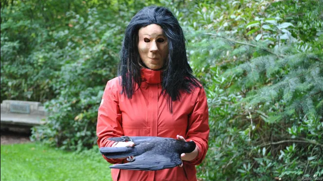 Воронов напугало зрелище мертвого сородича; но если бы кроме зоологов эту сцену наблюдали другие люди, они бы испугались еще сильнее, потому что человек с мертвой черной птицей в руках носил на лице маску. Маска была призвана не дать воронам запомнить настоящее лицо этого человека (на всякий случай: вороны, как мы помним, злопамятные). По словам ученых, маска была призвана сообщать лицу «нейтральное выражение», однако для человека, видевшего хоть один фильм ужасов, она явно выражает смертельную угрозу.
