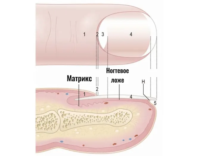 Эта структура является одной из основных частей ногтя, которая находится под ногтевым ложем и содержит нервы, а также лимфатические и кровеносные сосуды. Именно в этом слое производятся клетки ногтя, которые впоследствии затвердевают и превращаются в ногтевые пластины.
