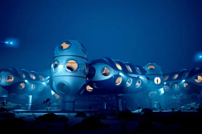 День на глубинеЧтобы занять свой номер, гость погружается с аквалангом на дно лагуны, подныривая в «бассейн» в центральном модуле. Далее можно переодеться в обычную одежду и освоиться.