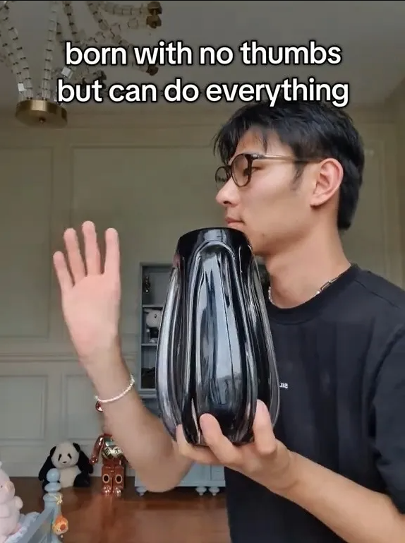 26-летний блогер из Нидерландов родился без больших пальцев и стал звездой TikTok благодаря роликам, где он демонстрирует, как справляется с повседневными задачами. Он утверждает, что отсутствие больших пальцев давно перестало быть для него слабостью.