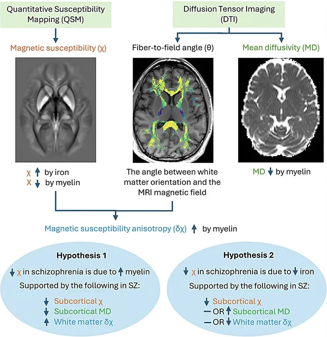 Исследователи провели магнитно-резонансную томографию мозга 85 пациентам с шизофренией и 86 здоровым людям. Более того, они использовали железочувствительное и диффузное МРТ.В результате ученые увидели, что по сравнению со здоровыми людьми, у пациентов с шизофренией в ключевых областях было:
