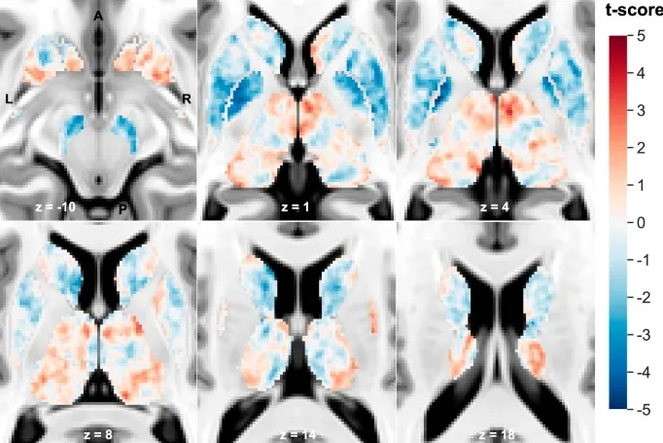 Эти аномалии были особенно выражены в глубоких структурах мозга, таких как хвостатое ядро, скорлупа и бледный шар, которые вместе играют важную роль в контроле движений, эмоций и сложных форм поведения.