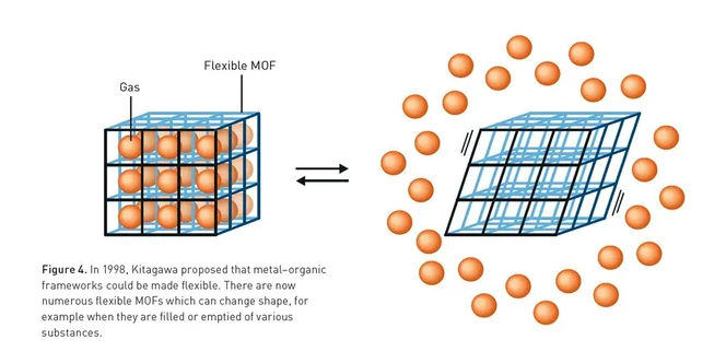 В 1998 году Китагава предложил сделать металлоорганические каркасы гибкими. В настоящее время разработаны многочисленные гибкие металлоорганические каркасы, которые могут менять форму, когда их наполняют или из них выпускают различные вещества.