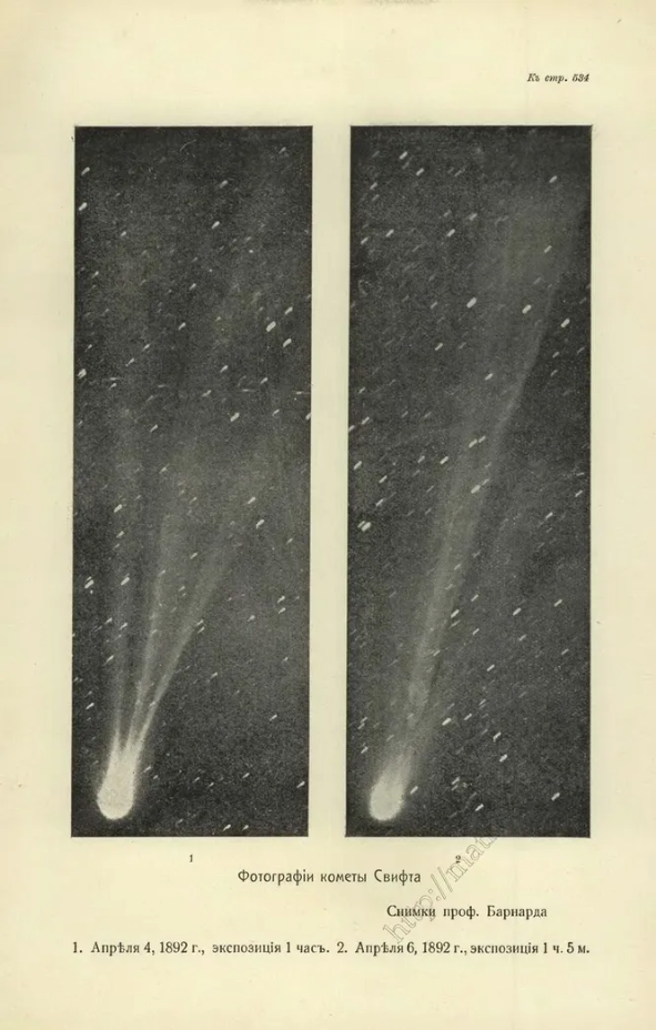 Кларк А. Общедоступная история астрономии XIX столетия. (1913)В 1980-х годах охотники за кометами целенаправленно отслеживали определенный участок неба. Всплеск активности Персеид в 1991-1992 годах косвенно подтвердил приближение комета. Окончательное открытие состоялось 26 сентября 1992 года — астроном-любитель Цурухико Киучи заметил объект севернее астеризма Большой Медведицы. Последующие наблюдения подтвердили яркость, превышавшую первоначальные оценки. Исторические исследования Гэри Кронка идентифицировали наблюдения 69 года до н.э. и 188 года н.э. как ранние проявления этой же кометы.