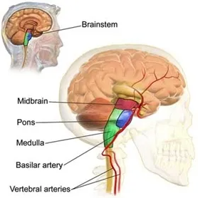 Ствол мозга состоит из трех основных отделов снизу вверх: продолговатый мозг, мост и средний мозг. Парабрахиальное ядро (PBN) находится в мосту (pons) — это средняя часть ствола, на уровне перехода к среднему мозгу. Это стратегически важное место: парабрахиальное ядро получает сенсорную информацию от спинного мозга и передает ее выше — в таламус, гипоталамус, миндалину и другие отделы, где формируются эмоциональные и поведенческие реакции на боль. PBN работает как своеобразная «релейная станция» на пути болевых сигналов от тела к высшим центрам мозга.