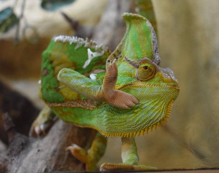 Многие животные двигают глазами, но ни у кого это не получается лучше, чем у хамелеонов – кому не попадались картинки и видео, в которых хамелеон смотрит одним глазом назад, а другим, например, вниз? С такими сверхподвижными глазами поле зрения у них охватывает 360°, и хамелеонам не нужно вертеть головой, чтобы заметить добычу или чтобы самим не стать добычей.