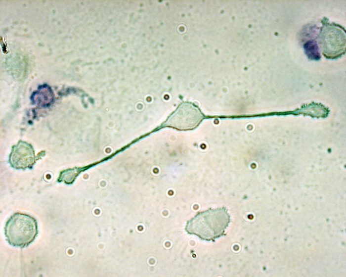 Мышиный макрофаг, пытающийся захватить что-то сразу с двух сторон.