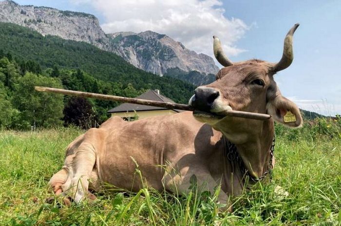 Мы писали о свиньях с инструментом, о тупиках с инструментом, о рыбах с инструментом, о волках с инструментом, не говоря уже о воронах, попугаях и шимпанзе – и вот теперь к ним добавляется корова по имени Вероника из деревни на юге Австрии. Понятно, что речь тут идёт о том, что животные используют те или иные предметы с определённой целью. Когда-то использование инструментов и вообще орудий труда считалось сугубо человеческой способностью, но уже давно таковой не считается: к человекообразным обезьянами с инструментальными палочками и прутиками добавились новокаледонские во́роны и попугаи с теми же прутиками, и список таких животных растёт, причём в качестве инструментов они используют не только палки. Слоны, например, способны использовать шланг с водой, а упомянутые волки – оставленные человеком краболовные снасти.