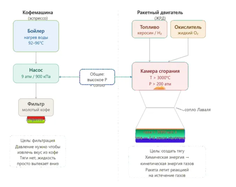 Что общего у кофемашины и ракетного двигателя? Эспрессо и ракета