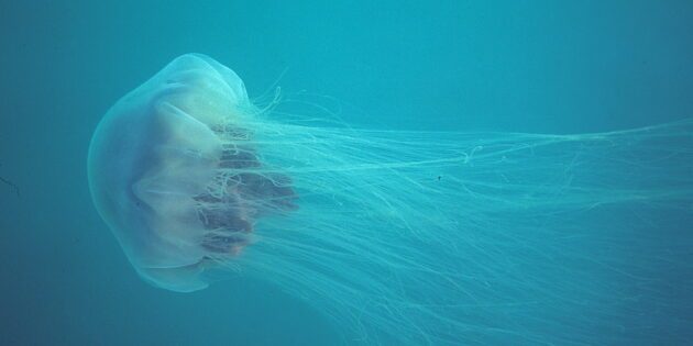 Волосистая цианея — здоровенное существо с кучей щупалец. Она же — «львиная грива». И это самая большая известная в мире медуза. Длина её щупалец может достигать 37 метров, а диаметр купола — 2 метров.